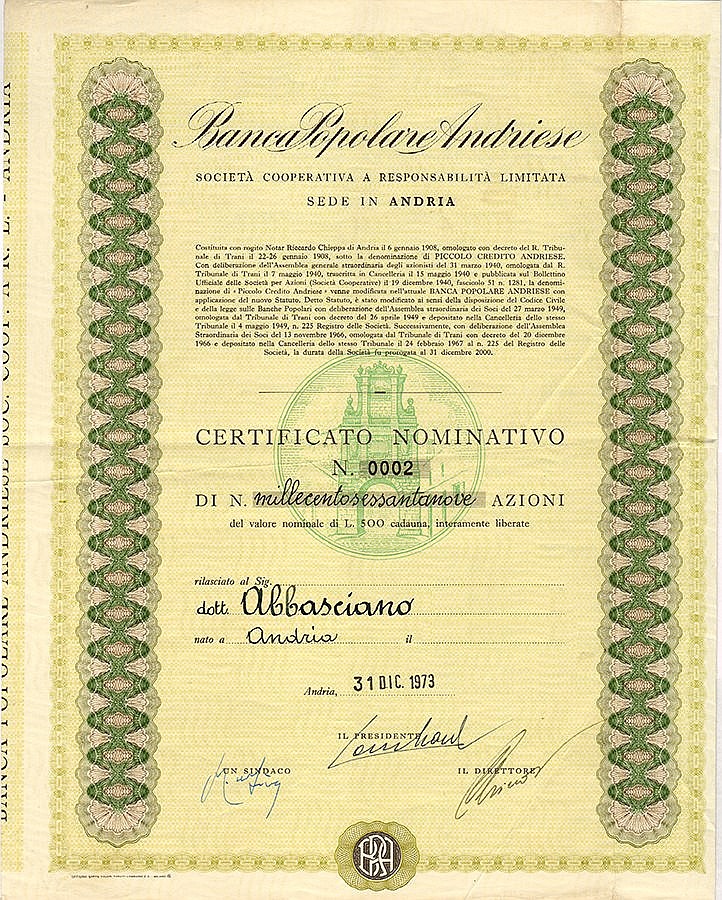 Fu costituita nel 1908 come Piccolo Credito Andriese, denominazione mutata in Banca Popolare Andriese nel 1940. Nel 2000 fu assorbita dal Credito Emiliano oggi gruppo Credem.