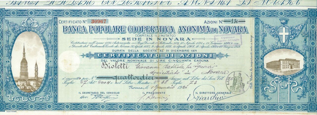 BANCA POPOLARE COOPERATIVA ANONIMA DI NOVARA