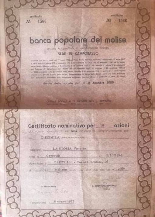 A-58666Banca Popolare del Molise-1Campobasso197710 azioni nominativeR1 (Più di 5000 pezzi)S1 (da 0 a 25 €)