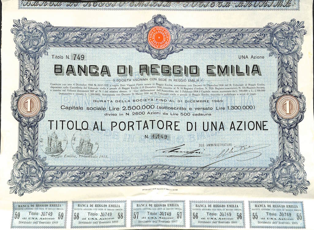 B-8804Banca di Reggio Emilia-2Officina Carte Valori Rebeschini di Turati e C. - MilanoReggio Emilia19151 azioneR4 (251-500 pezzi)S4 (da 101 a 250 €)