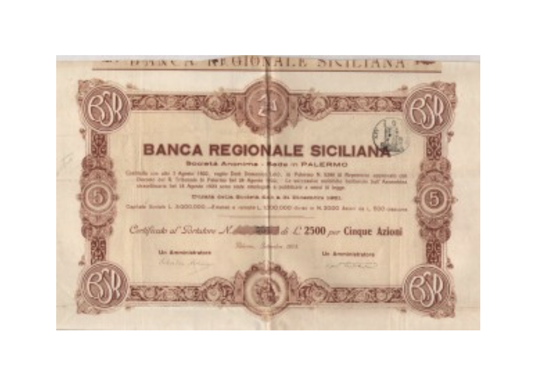 A-30058BANCA REGIONALE SICILIANA-1Palermo19205 Azioni--