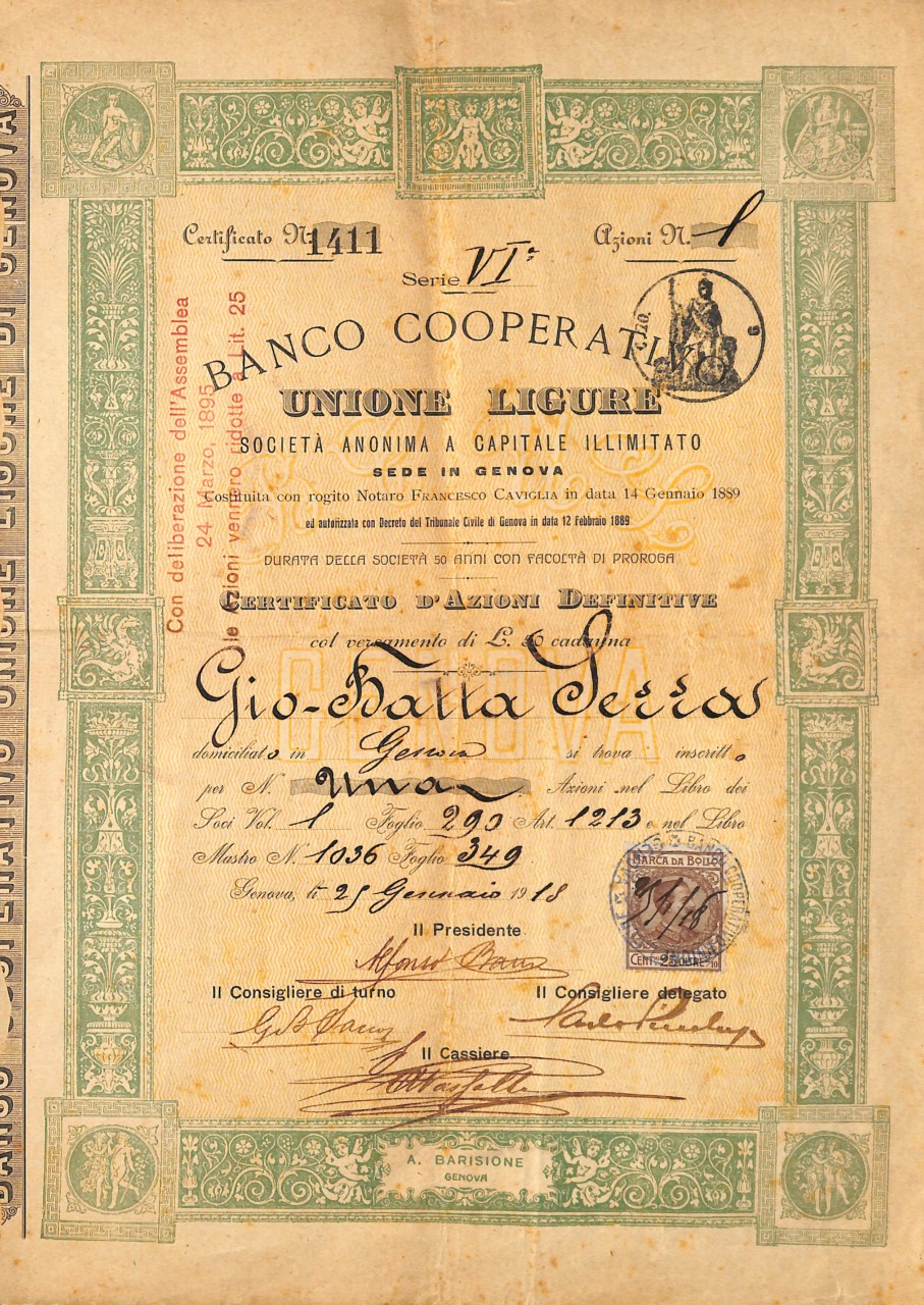 C-6359Banco Cooperativo Unione Ligure-3N.D.Genova1918VariabileR4 (251-500 pezzi)S4 (da 101 a 250 €)