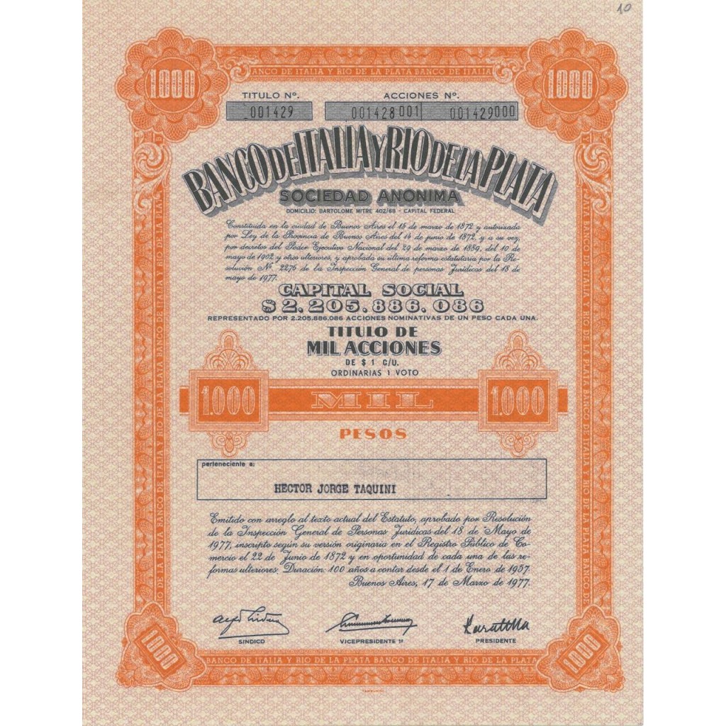 A-43254Banco de italia y rio de la plata-1Buenos Aires19771000 AzioniR2 (1001-5000 pezzi)S3 (da 51 a 100 €)