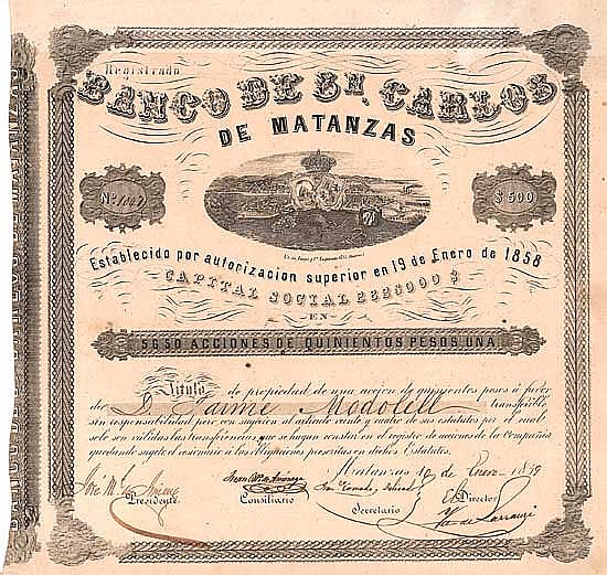 A-65612Banco de San Carlos de Matanzas-1Matanzas18601 azione da 500 Pesos--