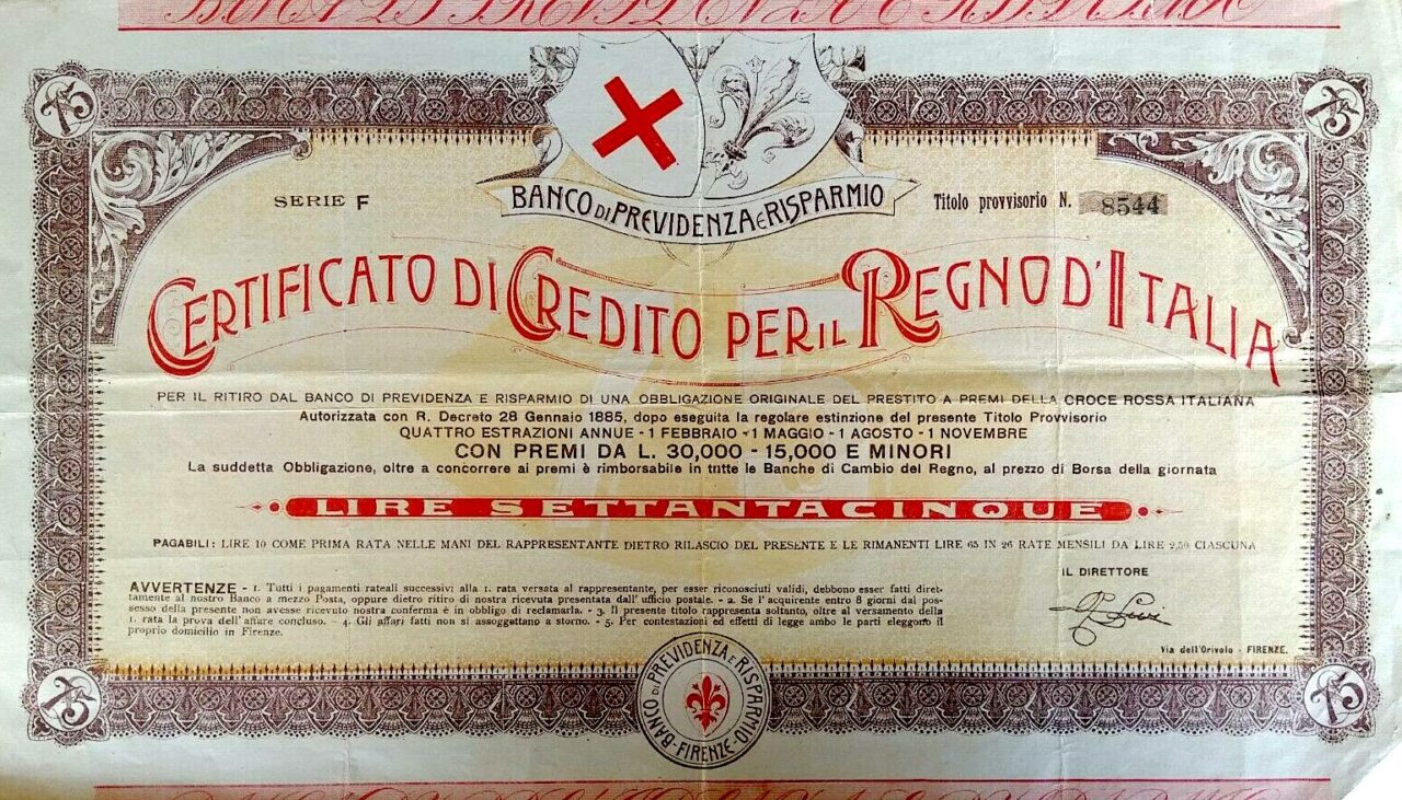 A-84889Banco di Credito e Risparmio-1Roma1885Certificato di Credito per il Regno d'Italia Lire 75R4 (251-500 pezzi)S4 (da 101 a 250 €)