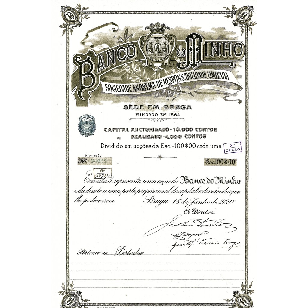 Il Banco do Minho (BM) fu istituito con una lettera di legge del 14 aprile 1864, con sede a Braga, e iniziò la sua attività nel giugno del 1865. Il capitale iniziale era di 600 contos de reis, elevato a 1200 contos de reis nel 1918. Il Banco do Minho nacque all’epoca del boom delle rimesse finanziarie degli emigranti in Brasile.