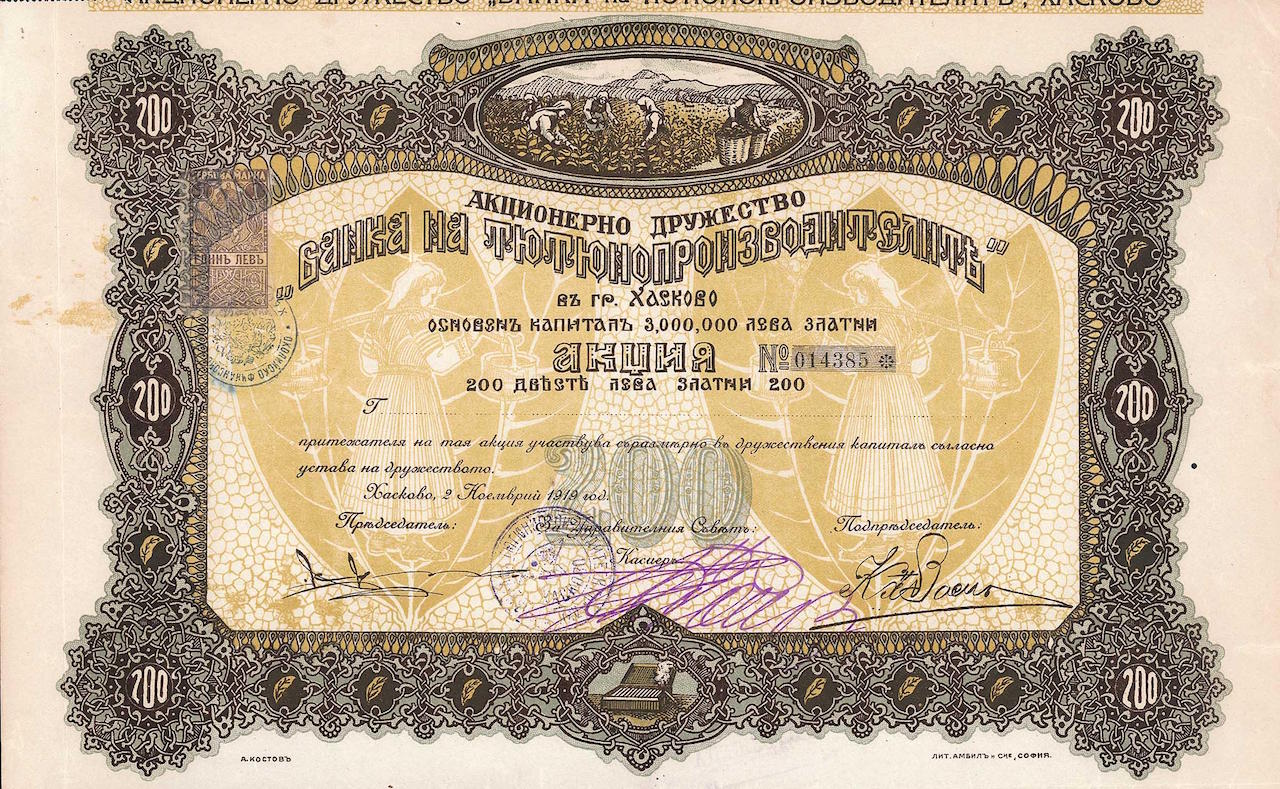 A-60566Bank für Tabakwirtschaft-1Schaskow19191 azione da 200 LewaR2 (1001-5000 pezzi)S2 (da 26 a 50 €)