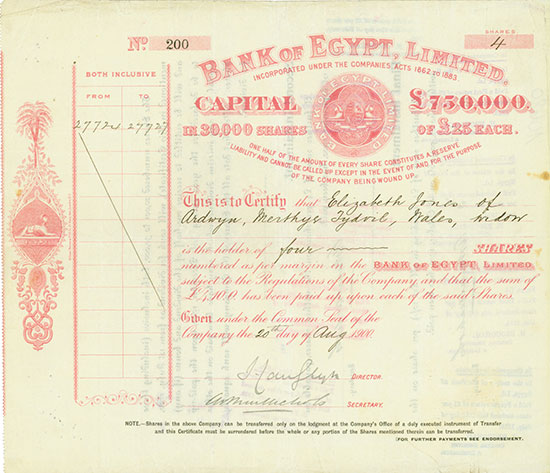 Capitale nel 1902 £ 750.000 in azioni di £ 25.