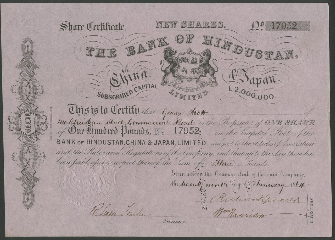 Registrato nel 1862, £ 25 delle azioni £ 100 pagate. Nel 1864 il capitale sottoscritto di “Nuove azioni” era aumentato di £ 2.000.000 nello stesso anno a £ 4.000.000. Fallito nella crisi del 1866. Numero di società 2759.