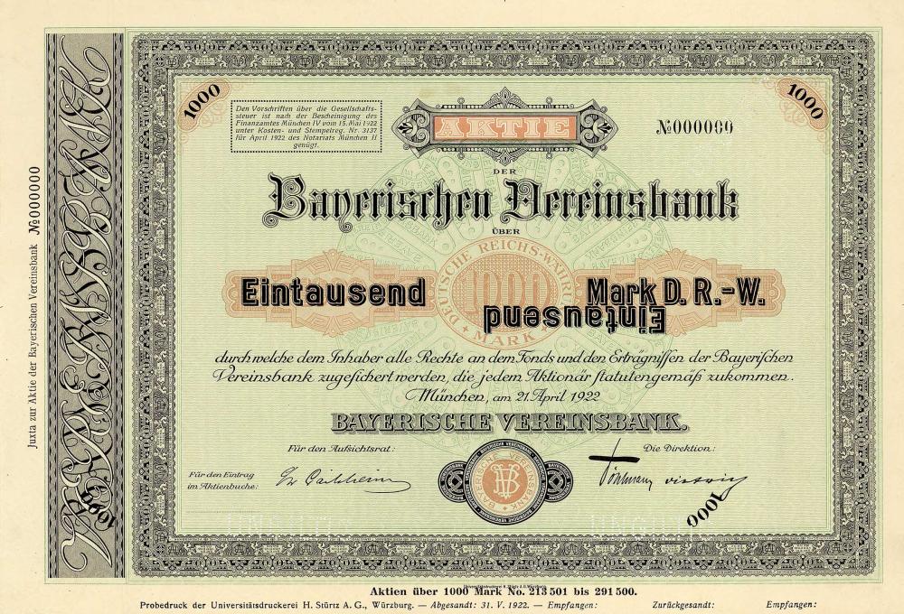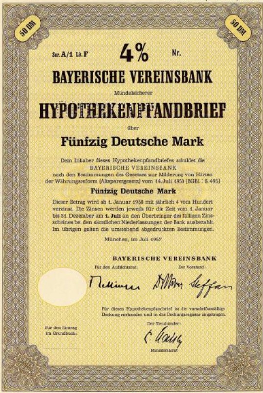 Fondata nel 1869 come banca di credito e mutuo (la cosiddetta banca mista). Nel 1920 gruppo di interesse con la Bayerische Handelsbank e la Vereinsbank di Norimberga, che abbandonò l’attività bancaria regolare, ma mantenne l’attività di credito reale (fino al 2002, dove divenne poi parte della HVB Real Estate Bank). Nel 1971 acquisizione della Bayerische Staatsbank AG. Nel 1999 si fonde con il rivale locale minerale Bayerische Hypotheken- und Wechselbank per formare la Bayerische Hypo- und Vereinsbank AG. Oggi appartiene al gruppo Unicredit italiano.