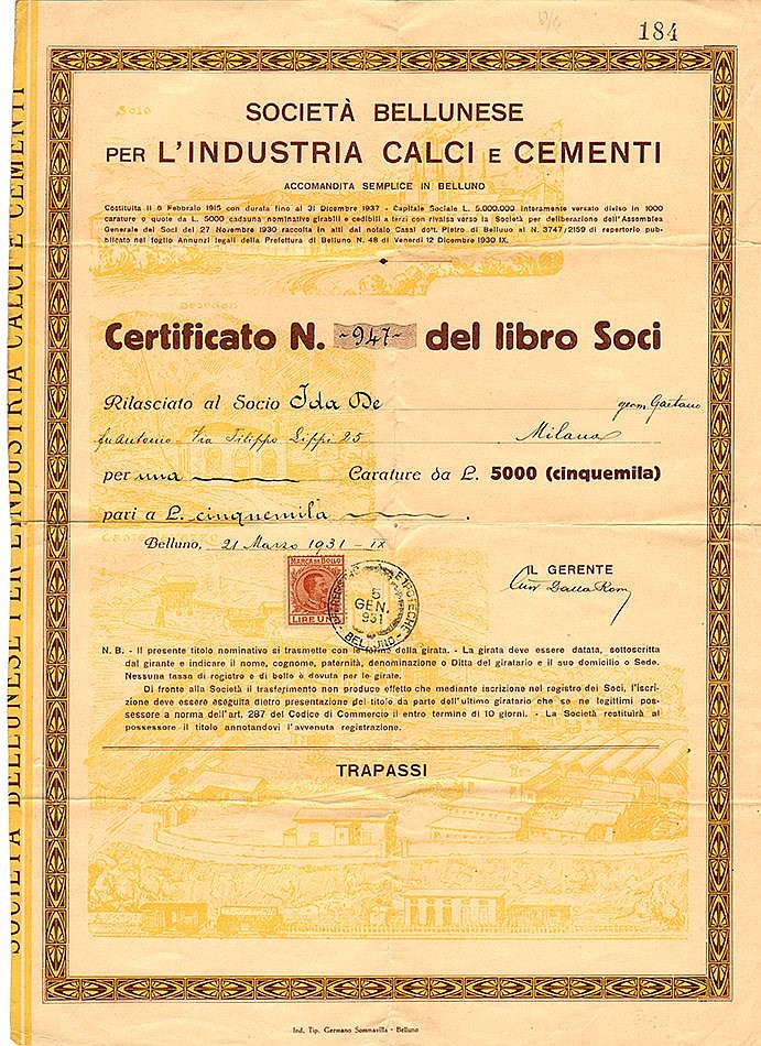 Bellunese per l’Industria Calci e Cementi Soc.