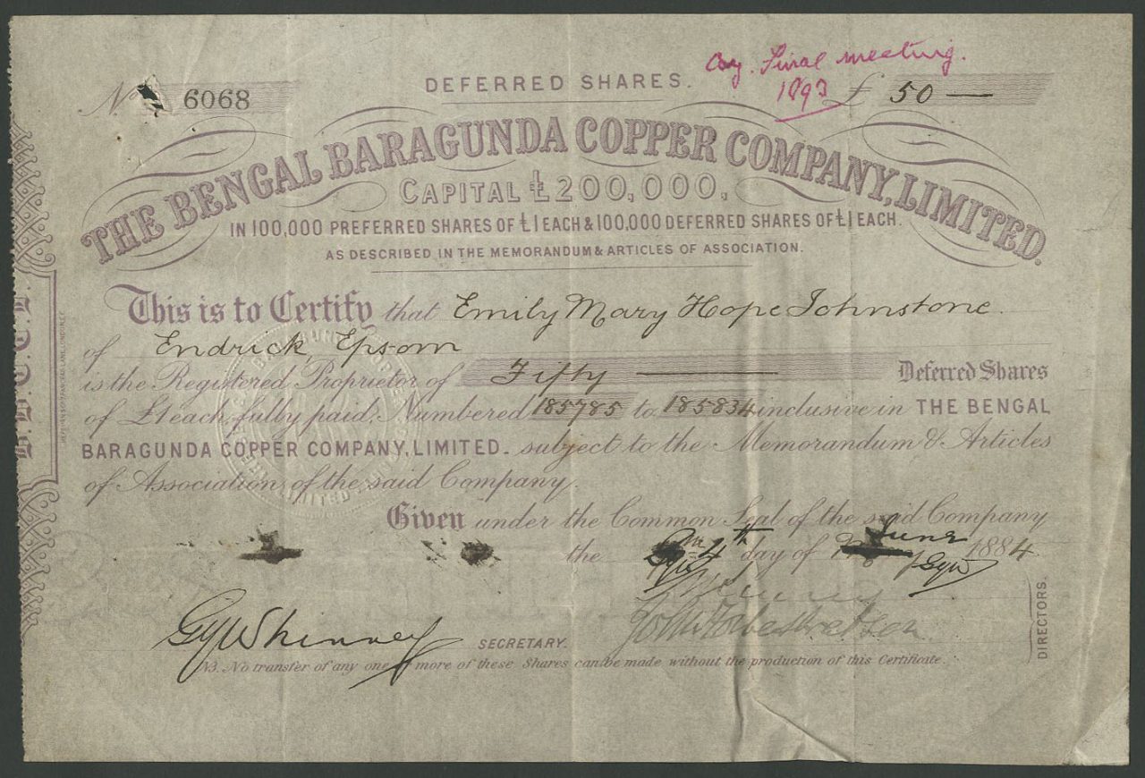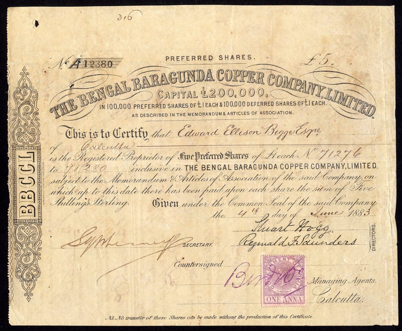 Capitale £ 200.000 in 100.000 azioni privilegiate di £ 1 e 100.000 azioni differite di £ 1.