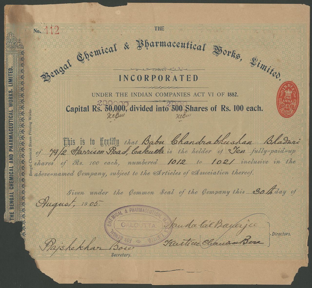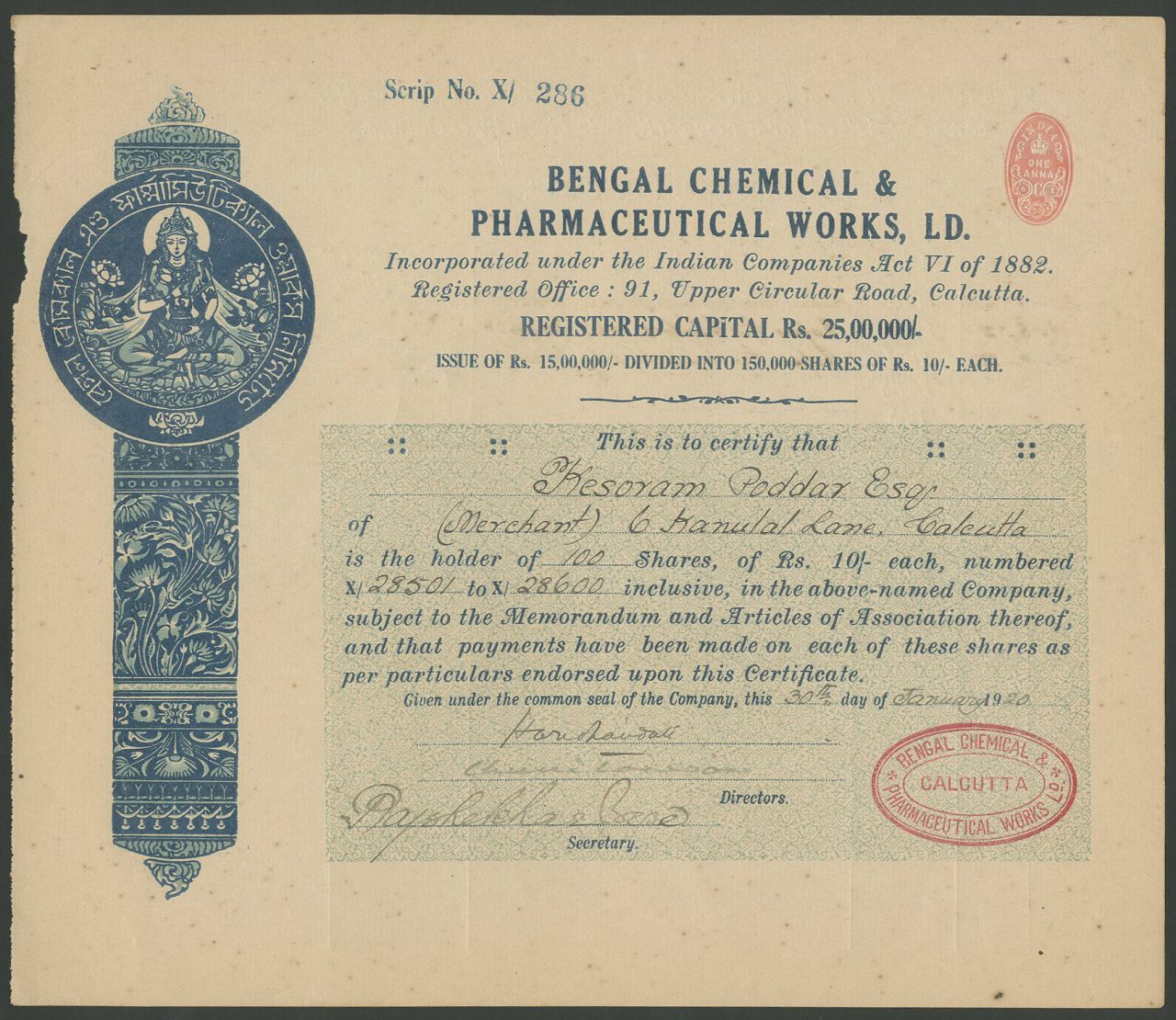 B-37850Bengal Chemical & Pharmaceutical Works Ltd.-2India192010 rupee sharesR2 (1001-5000 pezzi)S2 (da 26 a 50 €)