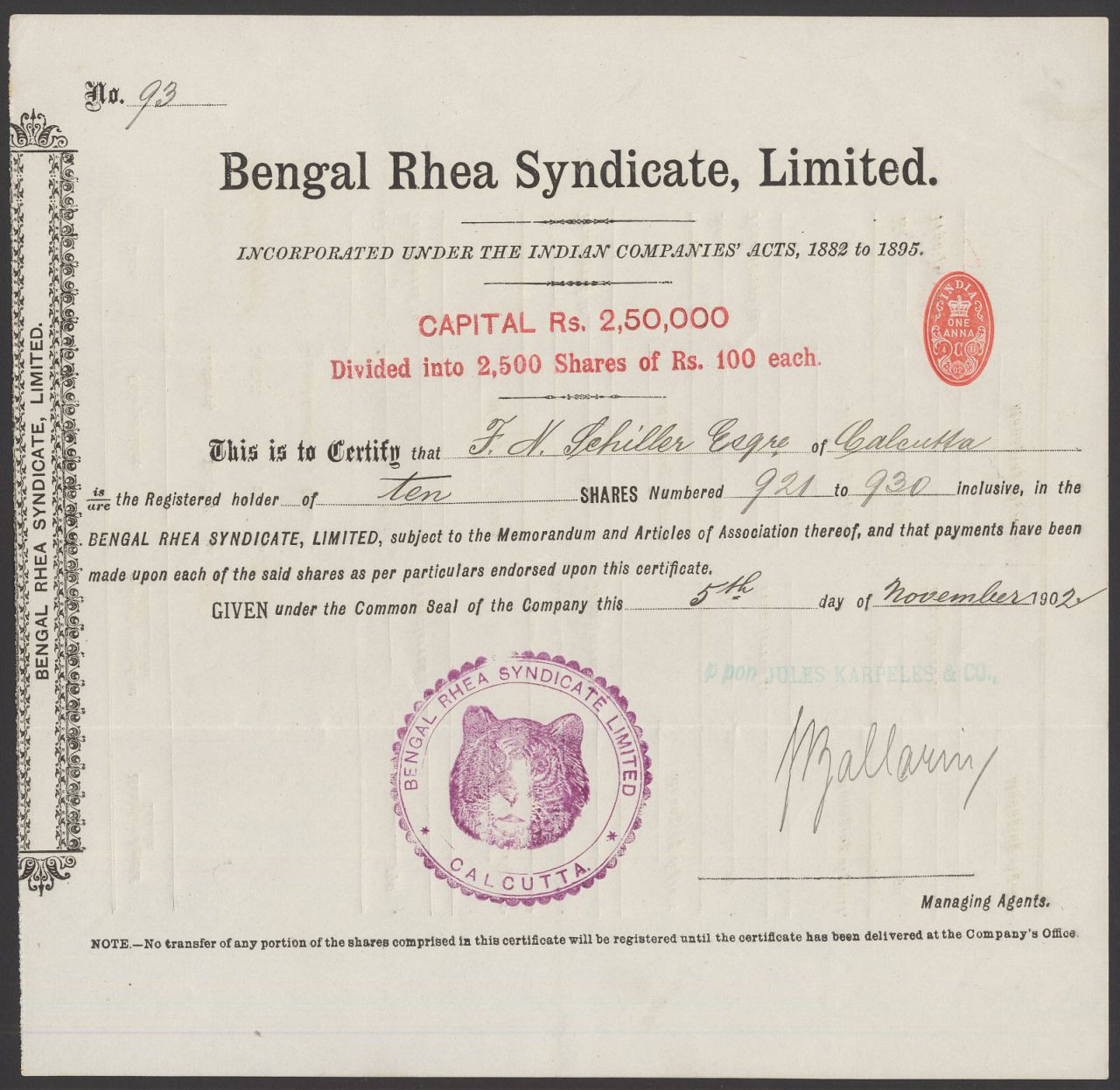 Costituito ai sensi delle leggi sulle società indiane dal 1882 al 1895.