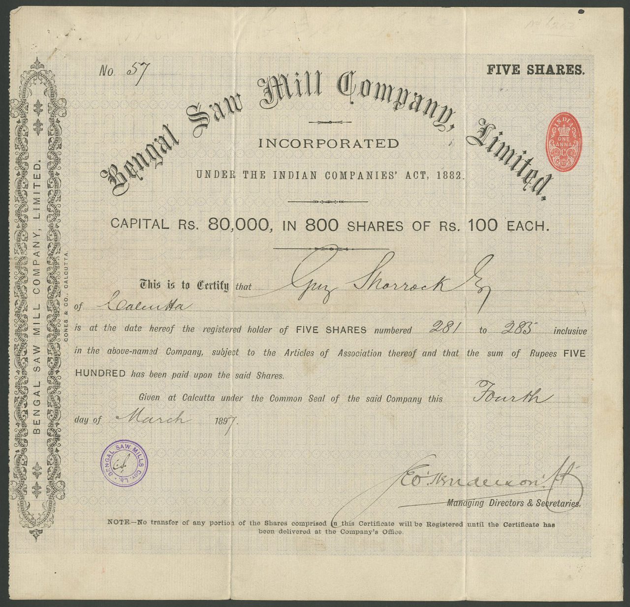 A-37897Bengal Saw Mill Company Limited-1India18975 sharesR2 (1001-5000 pezzi)S2 (da 26 a 50 €)