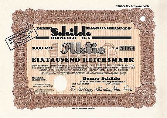 La società emerse dalla società di ingegneria meccanica e degli apparecchi di Benno Schilde, fondata nel 1874, che rimase di proprietà privata fino alla morte del fondatore e poi proseguita come una famiglia GmbH. L'AG fu fondata il 12 aprile 1922. Fabbricazione di ventilatori, sistemi di trattamento delle scorie, sistemi di riscaldamento e ventilazione, nonché lavatrici, sistemi di verniciatura e forni industriali. Nel 1922, la fabbrica di macchine imperiali di Meissen, l'Imperial Förster lavorava a Magdeburgo e furono rilevati i terreni e le strutture del Reichsflugzeugwerke Schwerin-Görries. Nel 1969 si fonde con Friedrich Haas GmbH e la Rheinische Dampfkesselfabrik Büttner & Cie. a Krefeld a Büttner-Schilde-Haas AG (BSH). Dal 1977: Babcock-BSH AG, da... Altro