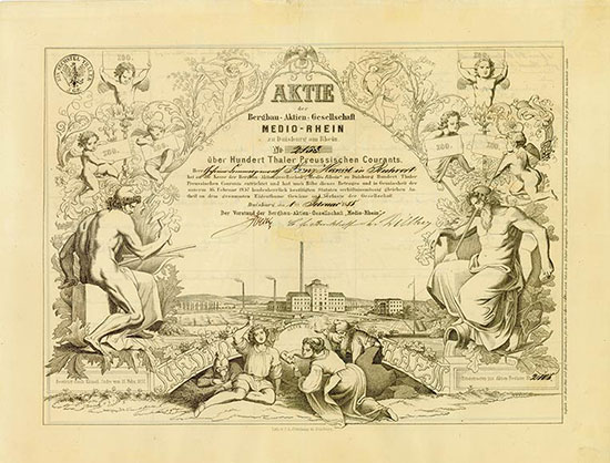 A-31262Bergbau-Aktien-Gesellschaft Medio-Rhein-1Germania18581 Share of 100 ThalerR6 (51-100 pezzi)S6 (da 501 a 1.000 €)