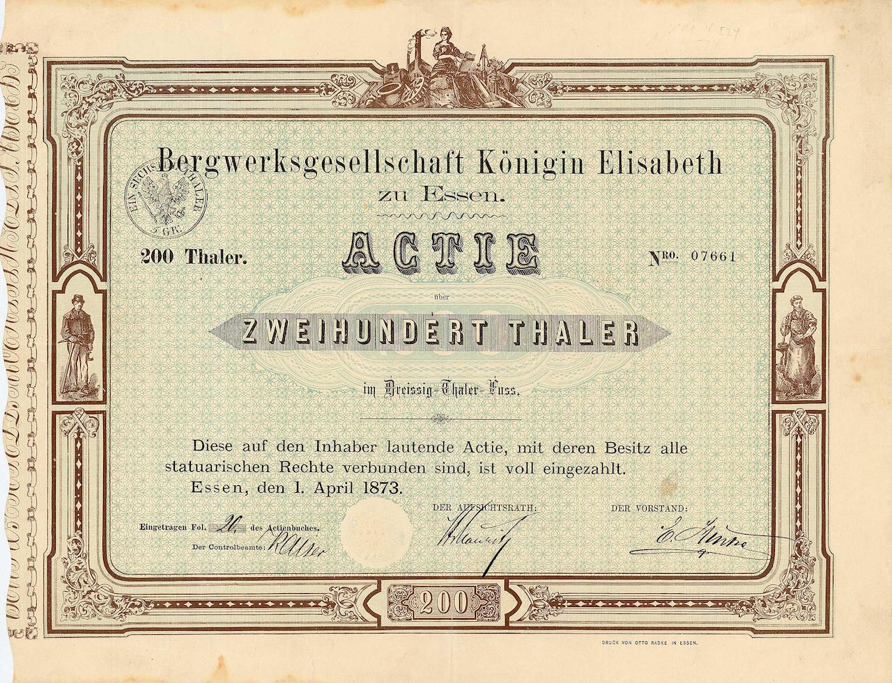 Fondata nel 1844 come vecchia unione di diritto. Già nel 1850, dopo che un soffitto di marna che era solo 32 m di spessore fu affondato, l’albero Wilhelm fu in grado di iniziare le miniere. L’AG, fondata nel 1873, non durò a lungo: già nel 1877, la scarsa situazione economica la costrinse a riconvertirsi in un sindacato in base alla nuova legge, in modo che i proprietari potessero essere resi responsabili con sussidi. Nelle miniere di Frillendorfer furono estratti principalmente carbone grasso e carbone. Operazione a giornata aperta di una cokeria e di una fabbrica di bricchette. Nell’aprile del 1916, il sindacato entrò in possesso del Mannesmannröhren-Werke. Da allora, la miniera di carbone duro della regina Elisabetta è stata gestita da Mannesmann come dipartimento operativo e, soprattutto, ha assicurato l’approvvigionamento di coke alle acciaierie sul sito della fabbrica di placche Schulz-Knaudt precedentemente rilevata da Mannesmann.