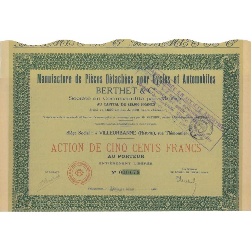 MANIFACTURE DE PIECES DETACHEES POUR CYCLES ET AUTOMOBILES BERTHET & C.
