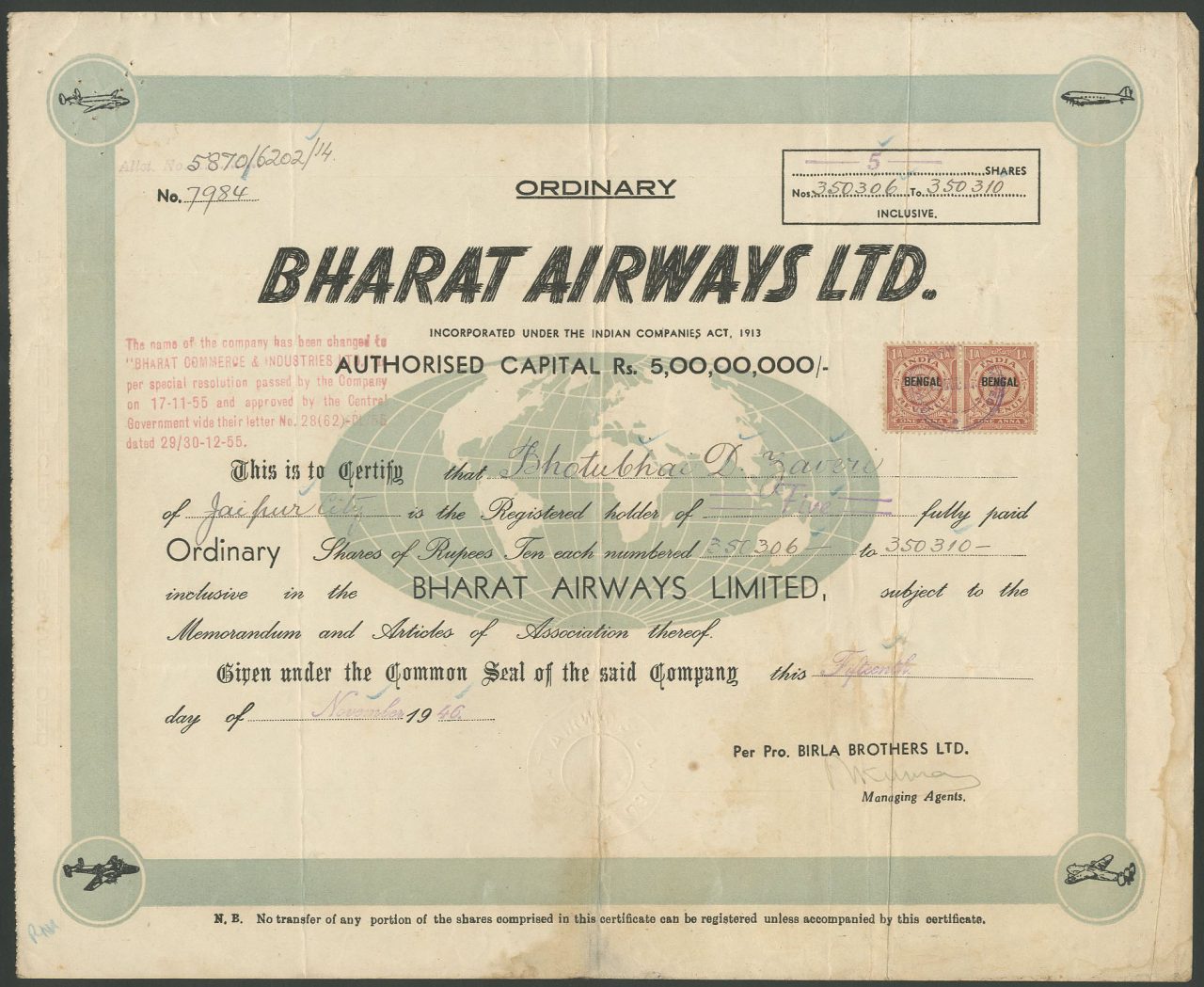 Incorporato sotto l'Indian Companies Act 1913.