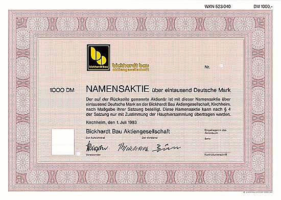A-66003Bickhardt Bau-1Kirchheim19931 azione da 1.000 Marchi--