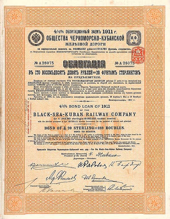 A-69017Black-Sea-Kuban Railway Company-1Jekaterinodar1911Bond 4,5% da 20 £--
