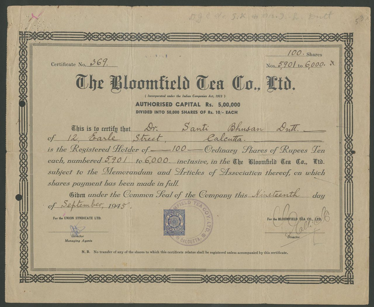 Incorporato sotto l'Indian Companies Act 1913.