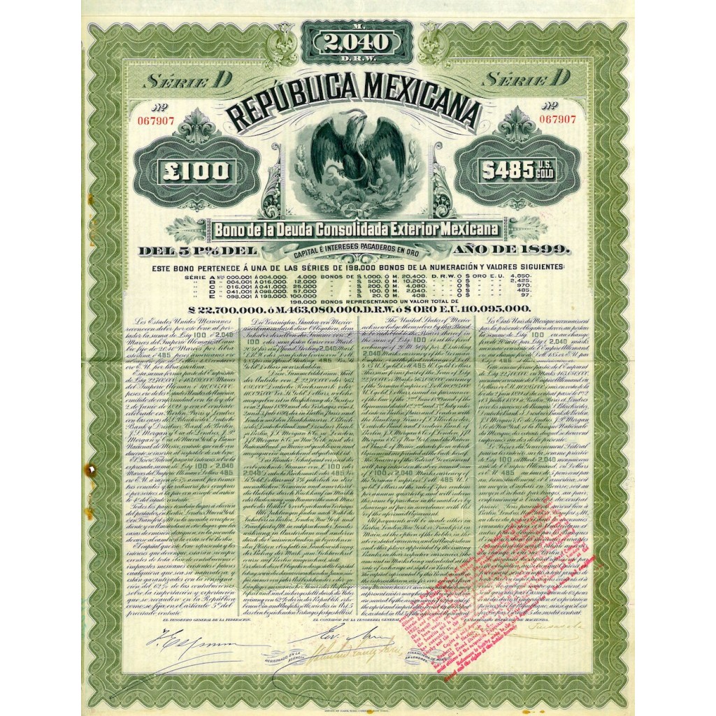 Bono de la deuda consolidada exterior mexicana 5% $100