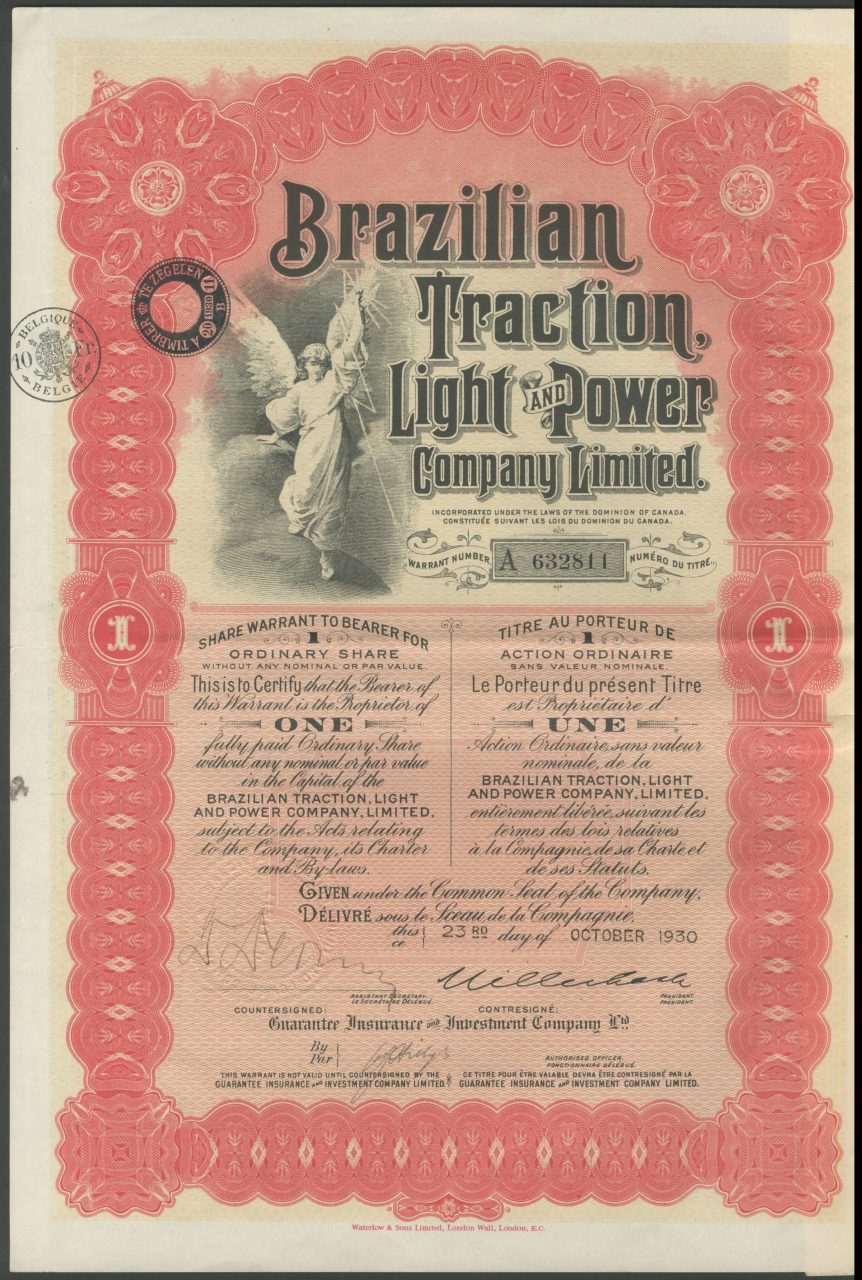B-33597Brazilian Traction, Light & Power Co. Ltd.-2Brasile19301 Share - RedR2 (1001-5000 pezzi)S3 (da 51 a 100 €)
