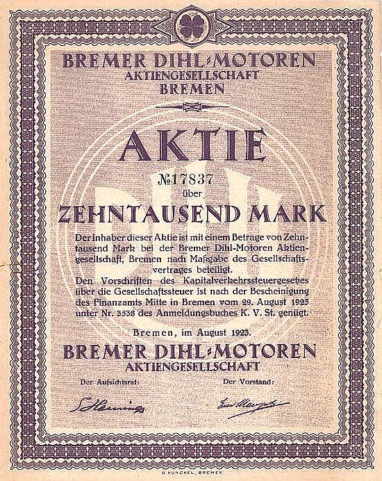Fondata nell’agosto 1923. Produzione e vendita di motori Dihl. Nell’ottobre 1925 l’azienda doveva essere ufficialmente cancellata. La domanda di apertura del fallimento è stata respinta per mancanza di beni.