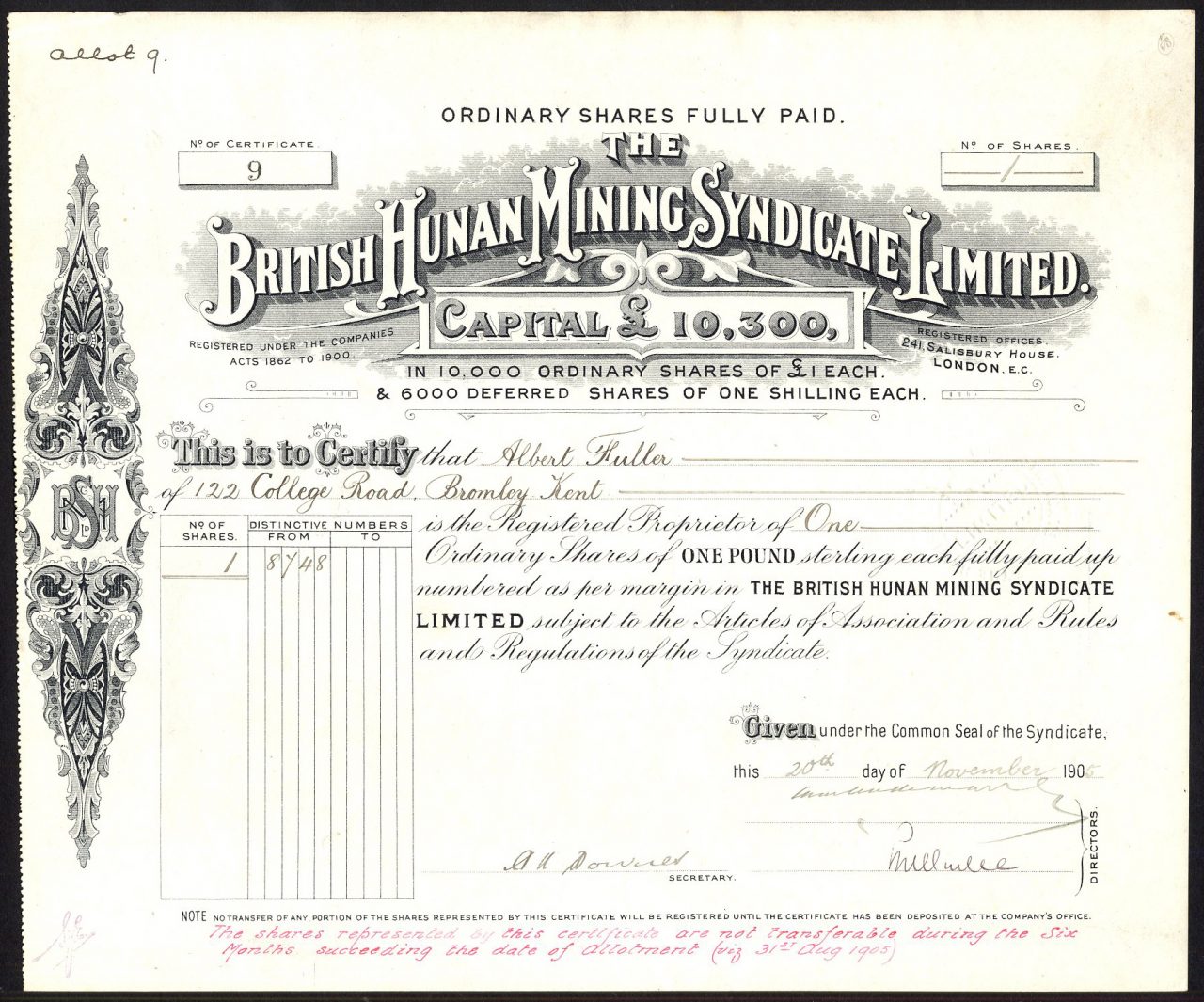 Capitale £ 10.300 in 10.000 azioni ordinarie di £ 1 e 6.000 azioni differite di 1 / -.