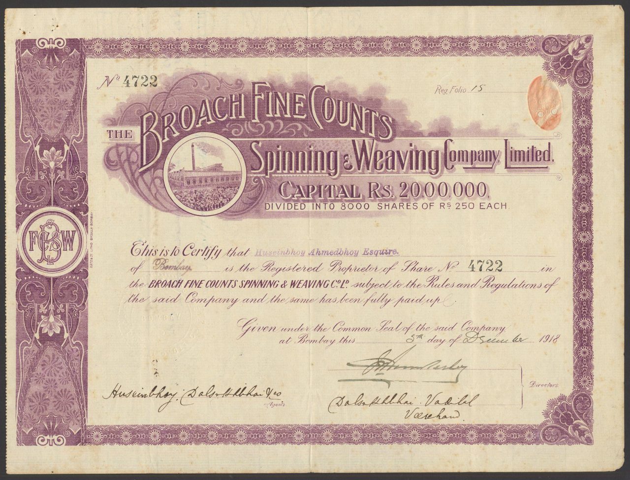 Incorporato sotto gli Indian Companies Acts. Capitale 20.00.000 rupie in 8.000 azioni da 250 rupie.