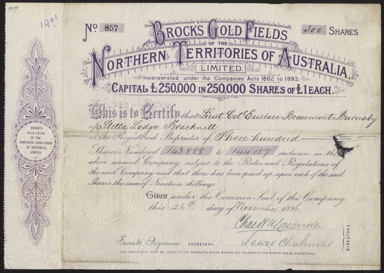 Brock’s Gold Fields of the Northern Territories of Australia Ltd