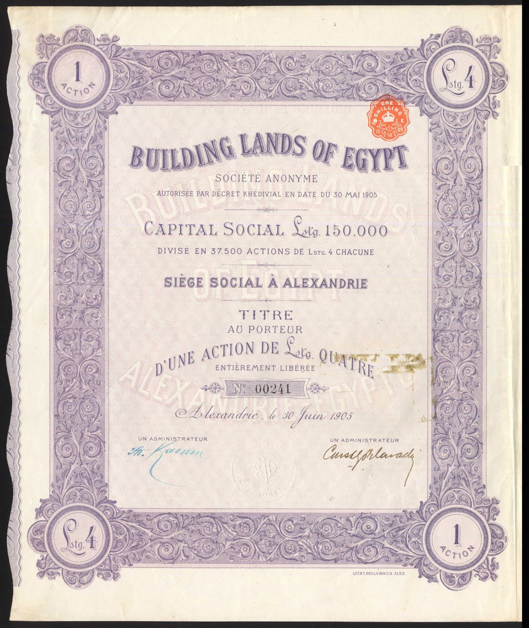 A-35264Building Lands of Egypt S.A.-1Egitto19051 ShareR2 (1001-5000 pezzi)S2 (da 26 a 50 €)