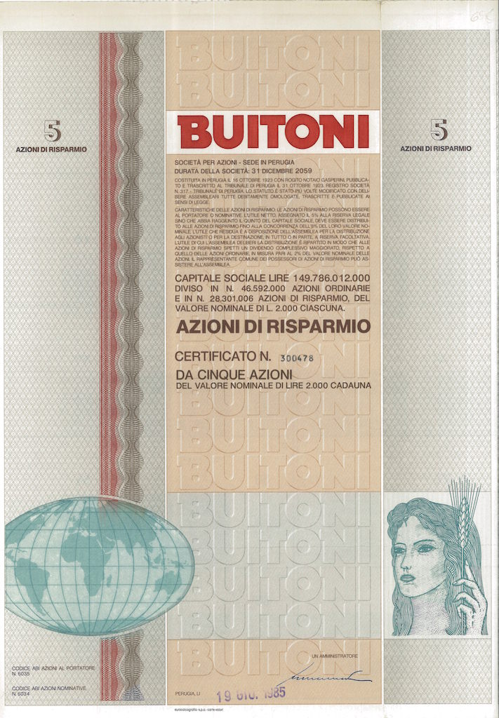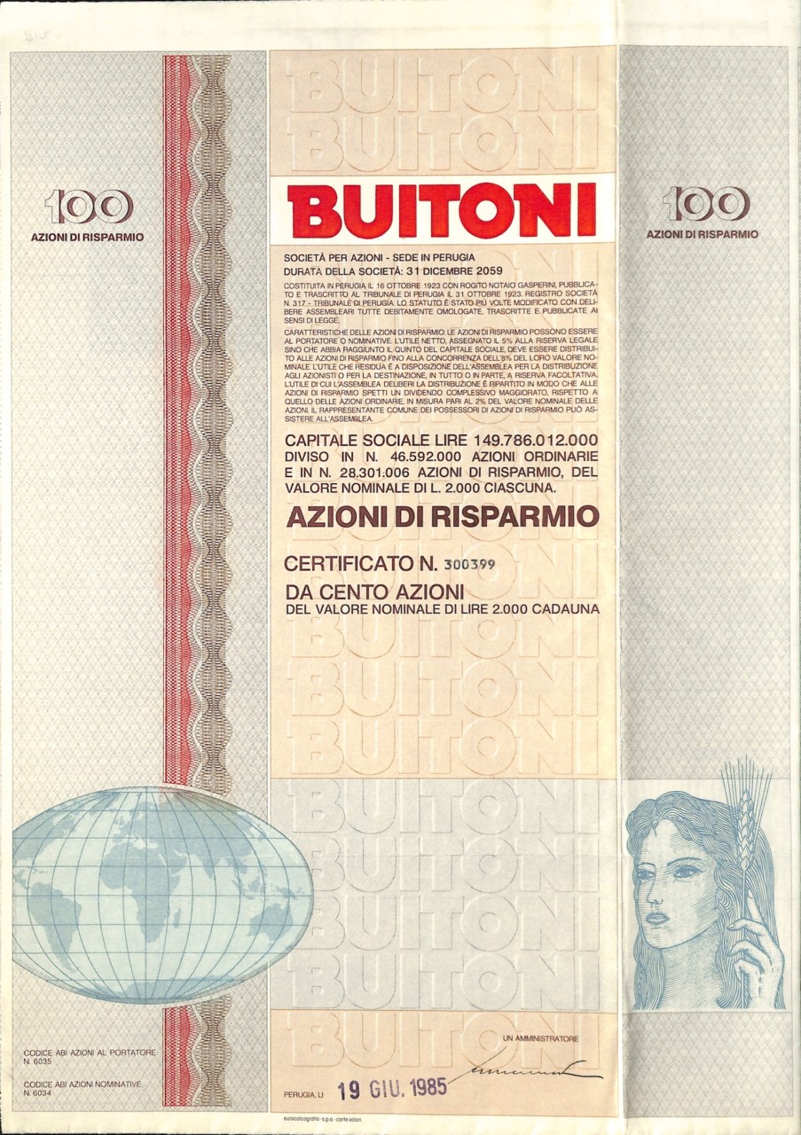 Nel corso degli anni venti il ramo perugino della famiglia, costituito dai cinque figli di Francesco Buitoni, tra i quali si pone in particolare evidenza il terzogenito Giovanni Buitoni, si assicura il controllo delle attività, attraverso un processo di acquisizione di pacchetti azionari che si conclude nel 1927.