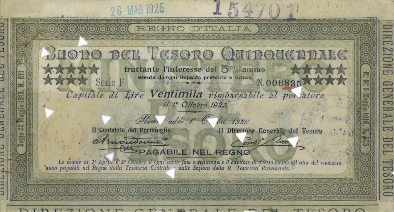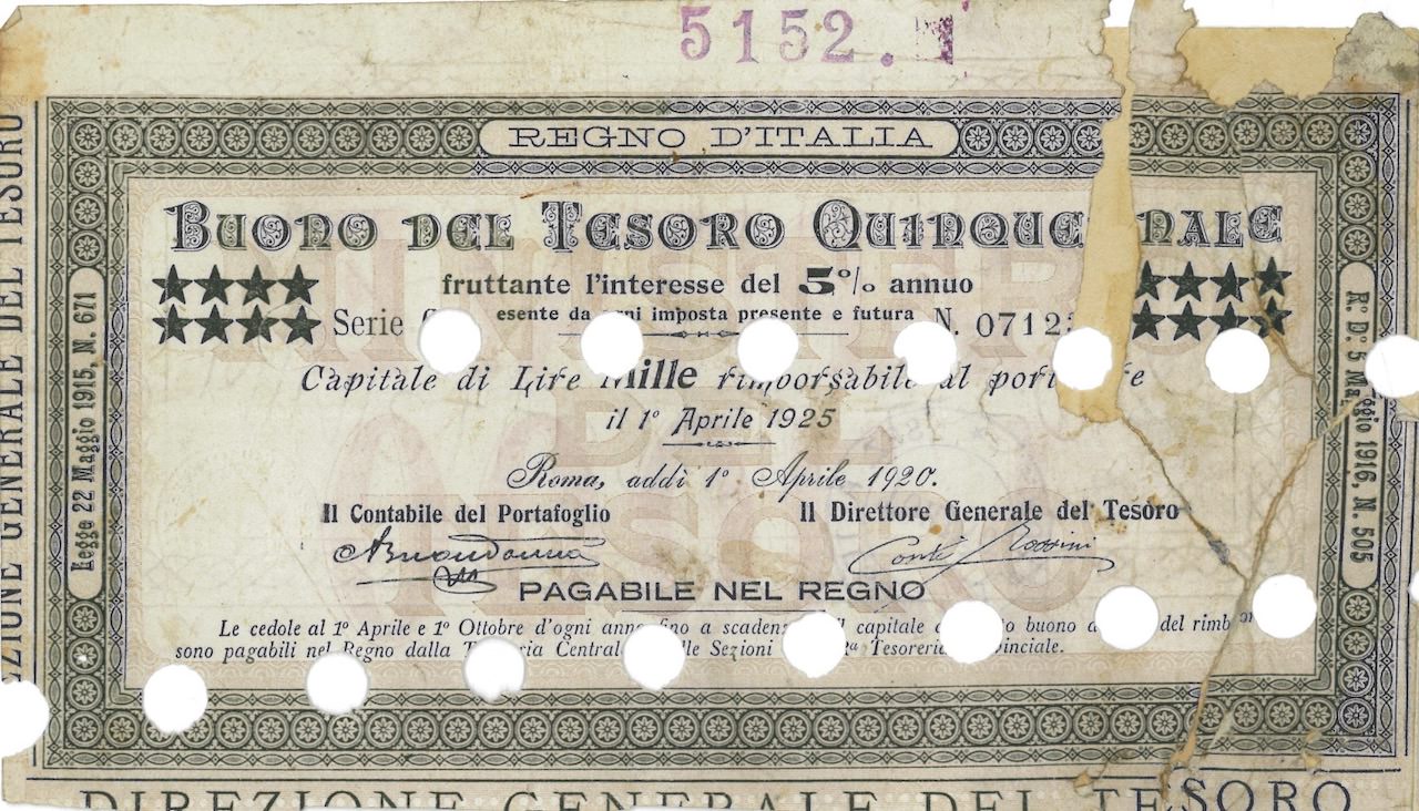 Regno d’Italia – Buono del Tesoro Quinquennale