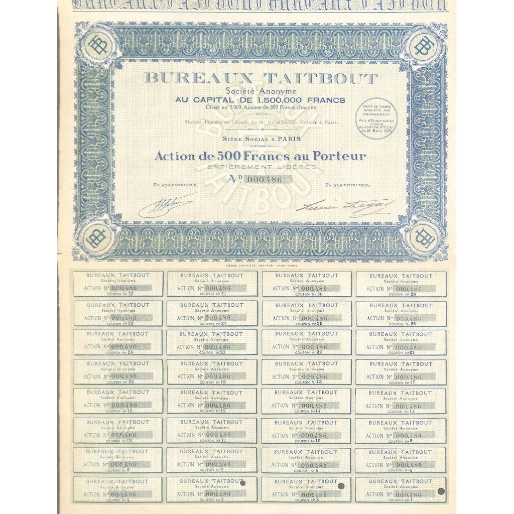 Una azione al portatore del valore di 500 Franchi.