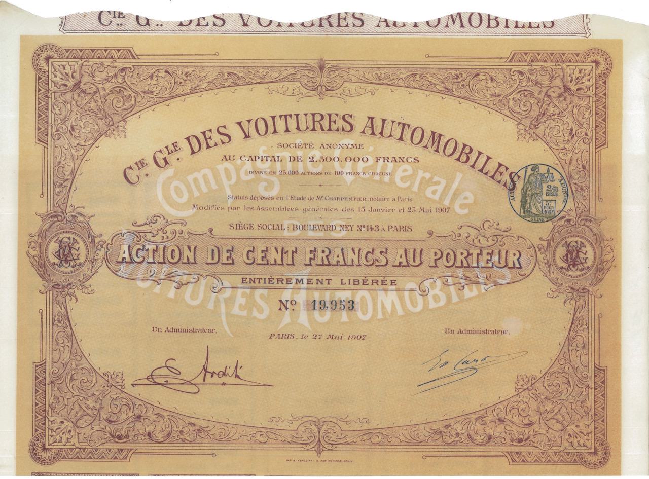A-28648C.ie G.le des Voitures Automobiles-1Parigi19071 azioneR3 (501-1000 pezzi)S3 (da 51 a 100 €)