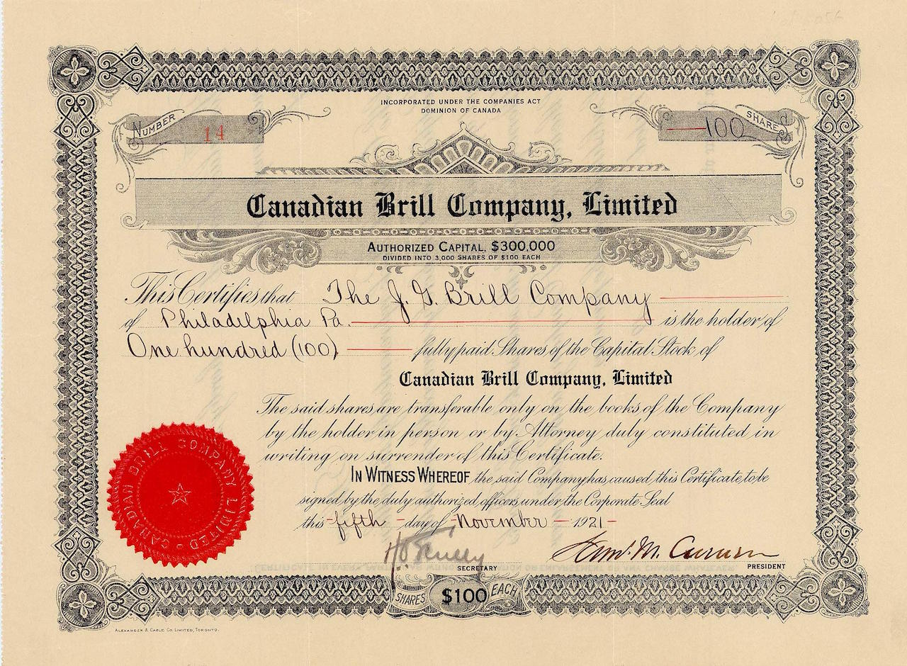 Fondazione come J.G. Brill & Son a Filadelfia nel 1868. La società è diventata il più grande produttore di tram e filobus negli Stati Uniti ed è stata caratterizzata da numerose innovazioni. Filiali in Canada e Francia. La Canadian Brill Co., fondata a Fort Edward (Ontario) nel 1921, produceva veicoli Brill e ACF-Brill con il marchio Canadian Brill e dopo il 1944-1954 Canadian Car & Foundry-Brill (CCF-Brill). Vari acquisti da altri produttori di vagoni, tra cui anche American Car Co. e collaborazioni. Nel 1926, American Car & Foundry (ACF), il costruttore di veicoli commerciali e carrozzerie fondato nel 1899, rilevò la maggioranza di Brill. ACF è stato molto forte nella produzione di autobus. Negli anni ’30, la situazione aziendale divenne più difficile, apparvero perdite nella divisione carri e le fabbriche furono gradualmente chiuse. Nel 1944, il ramo di produzione dei tram fu completamente abbandonato e la J.G. Brill Co. completamente integrata nell’ACF-Brill.