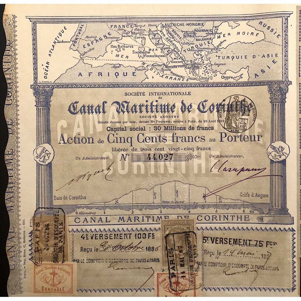 Il Canale di Corinto è un canale artificiale che collega il Golfo di Corinto con il mar Egeo, tagliando in due l’istmo che li separa. Costruito tra il 1881 e il 1893, ha una lunghezza di 6345 m, è largo circa 25,6 metri e profondo fino a 8 metri, limitando così il passaggio a navi di stazza medio-piccole (circa 10.000 t).