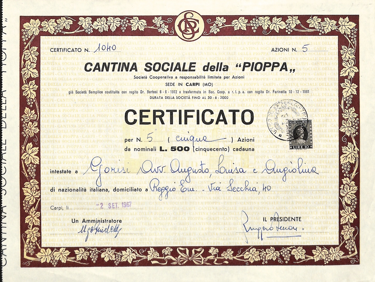 Tralci di vite si rincorrono nel bordo, logo in alto.
