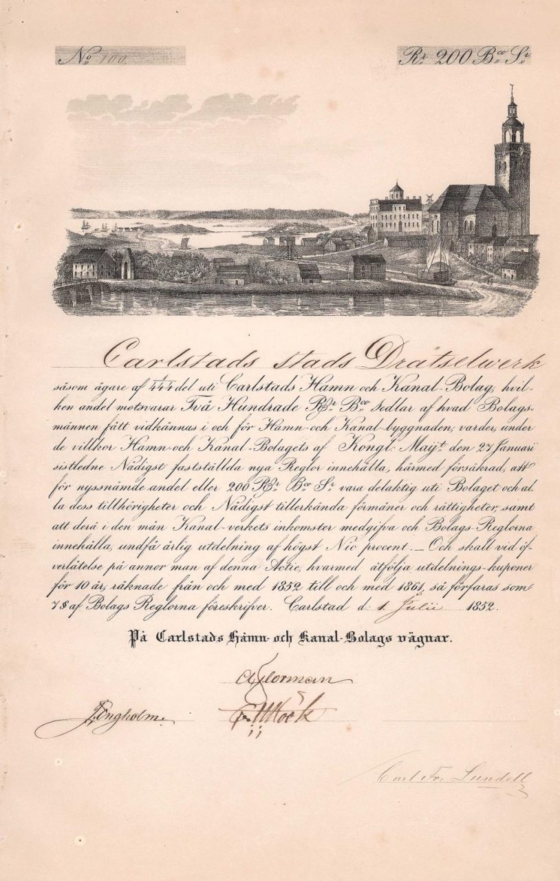 Carlstad (ora Karlstad) si trova alla foce del fiume Klarälv nel Vänerser (il lago più grande della Svezia). Fu solo nel 1800 che Karlstadt ebbe un collegamento con altre parti del paese quando fu costruito il Canale Trollhatte dal Lago Vaän a Göteborg. Tuttavia, questo si è rivelato troppo piccolo. La “Compagnia Port and Canal di Carlstad”, fondata nel 1852, fu responsabile dell’espansione del canale e in particolare dell’espansione del porto. Già nel 1856 la città assunse la proprietà della Ges.