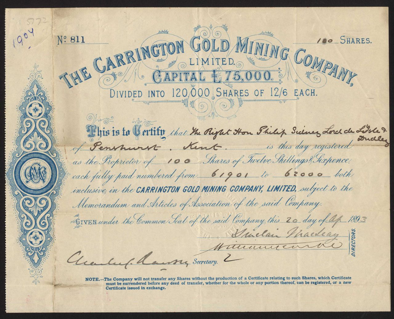 Registrato nel 1892. Dissolto <1916. Azienda numero 36816. Miniere nel Queensland.