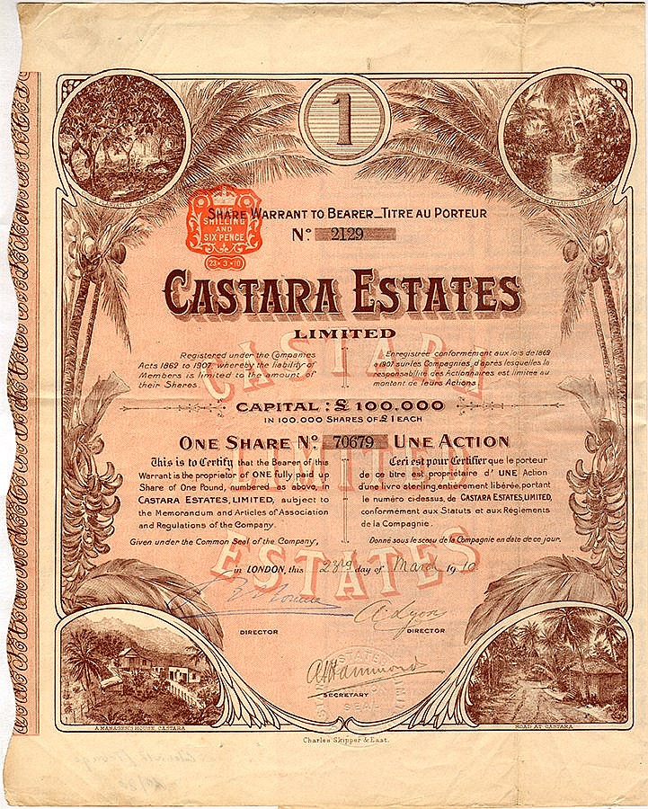 A-55537Castara Estates Limited-1Londra19101 azione al portatore da 1 £--