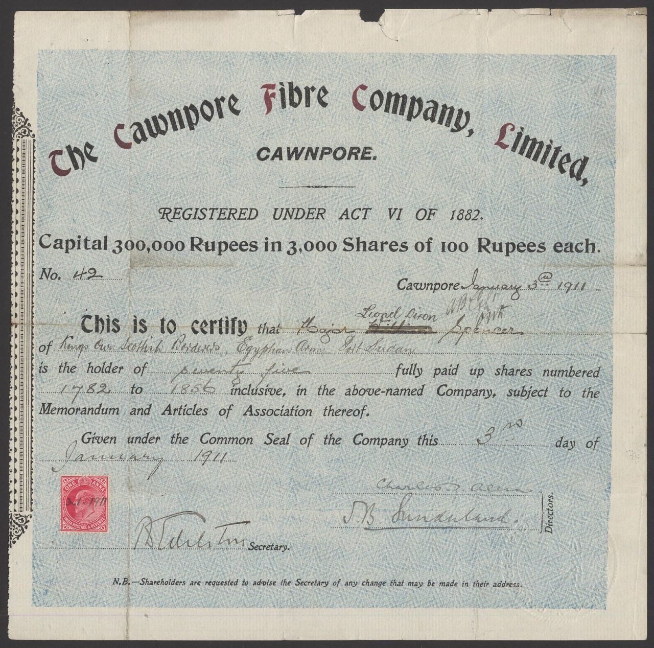 Incorporato sotto l'Indian Companies Act 1882.