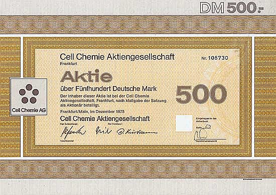 A-66245Cell Chemie AG-1Francoforte19751 azione da 500 Marchi--