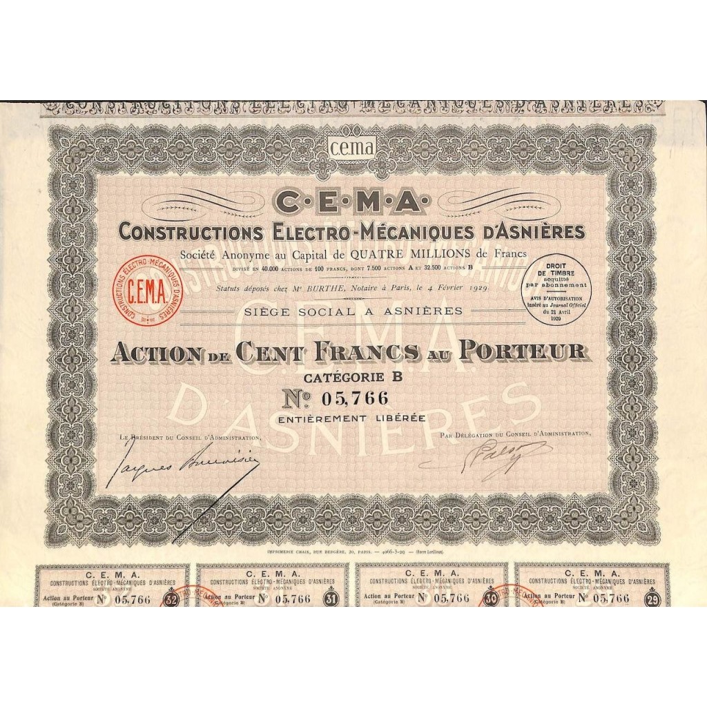 A-51553Cema – constructions electro-mecaniques d’asnieres-1 Asnieres1929100 FranchiR1 (Più di 5000 pezzi)S1 (da 0 a 25 €)