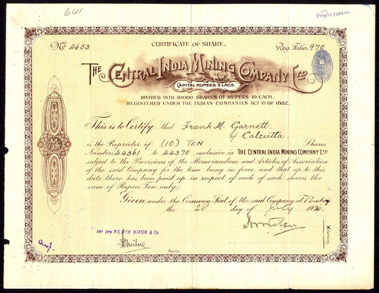 Incorporato sotto gli Indian Companies Acts. Capitale 96.87.500 rupie in 46.875 azioni ordinarie da 100 rupie e 10.000 azioni privilegiate cumulative del 5% di 500 rupie.