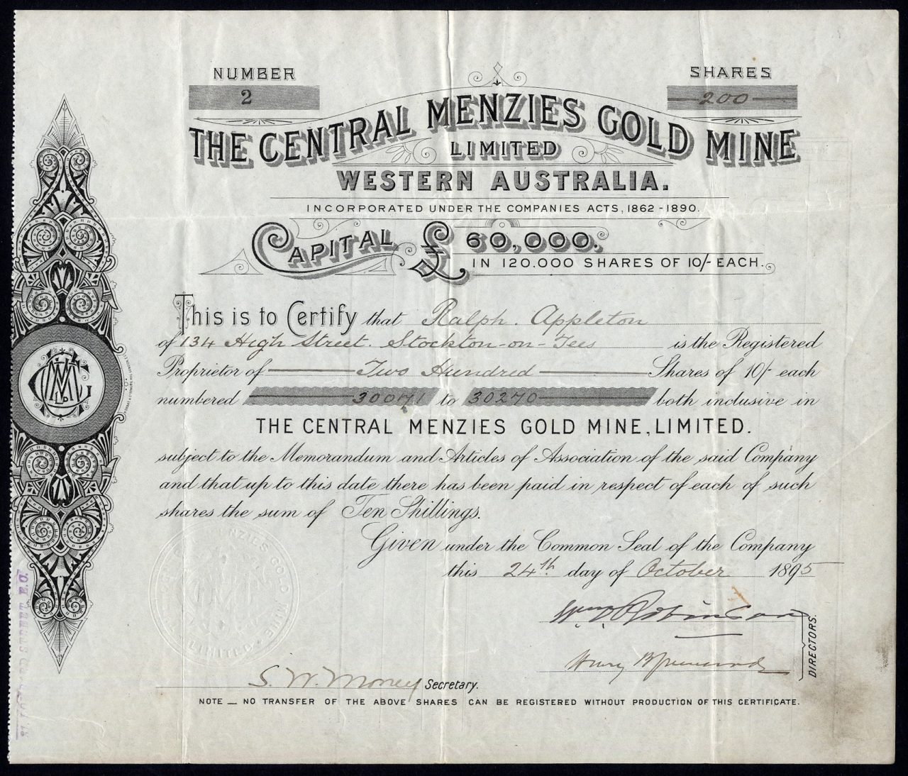 A-32006Central Menzies Gold Mine Ltd-1Australia Occidentale1895200 SharesR2 (1001-5000 pezzi)S2 (da 26 a 50 €)