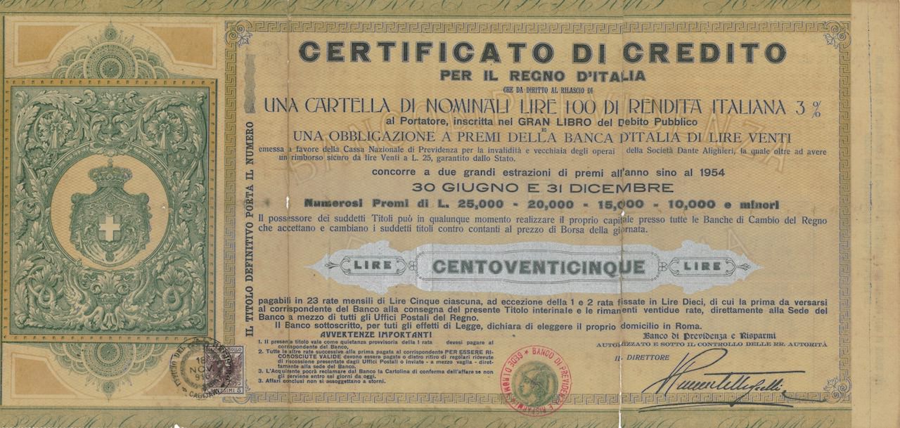 Certificato di Credito per il Regno d’Italia – Lire 125